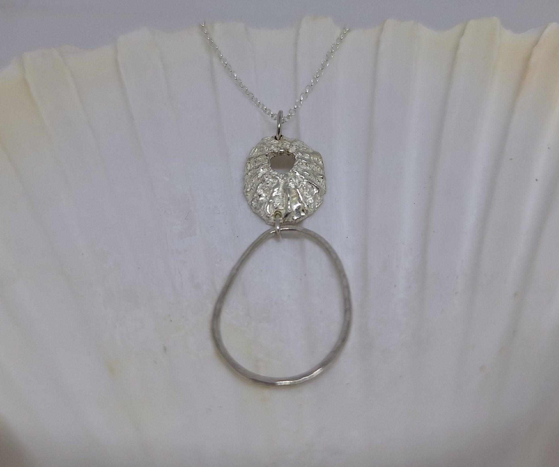 Beautiful sterling silver limpet and pebble pendant inspired by our oceans.