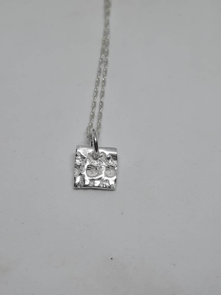 Beautiful contemporary handmade sterling silver shell textured square charm pendant.