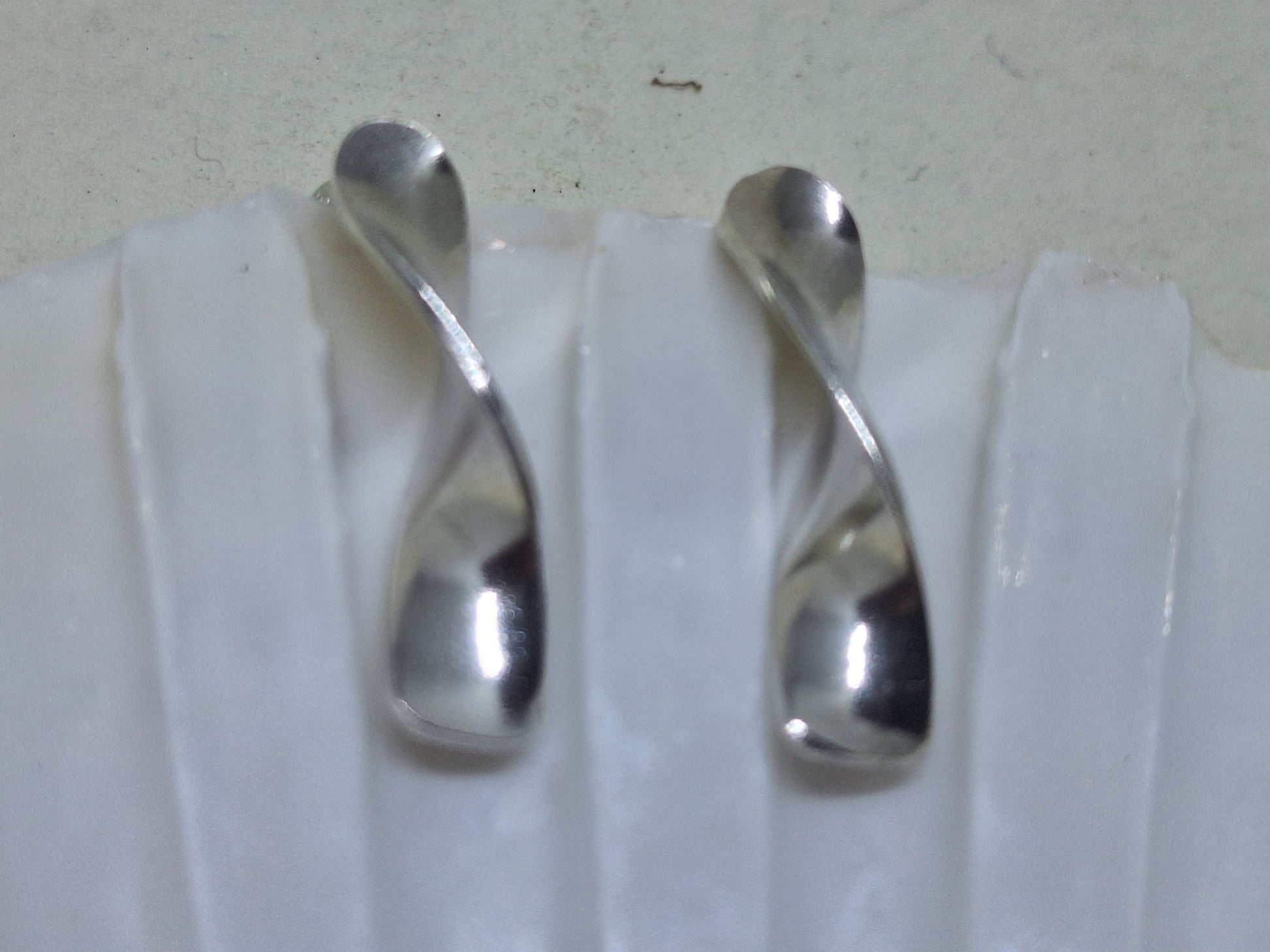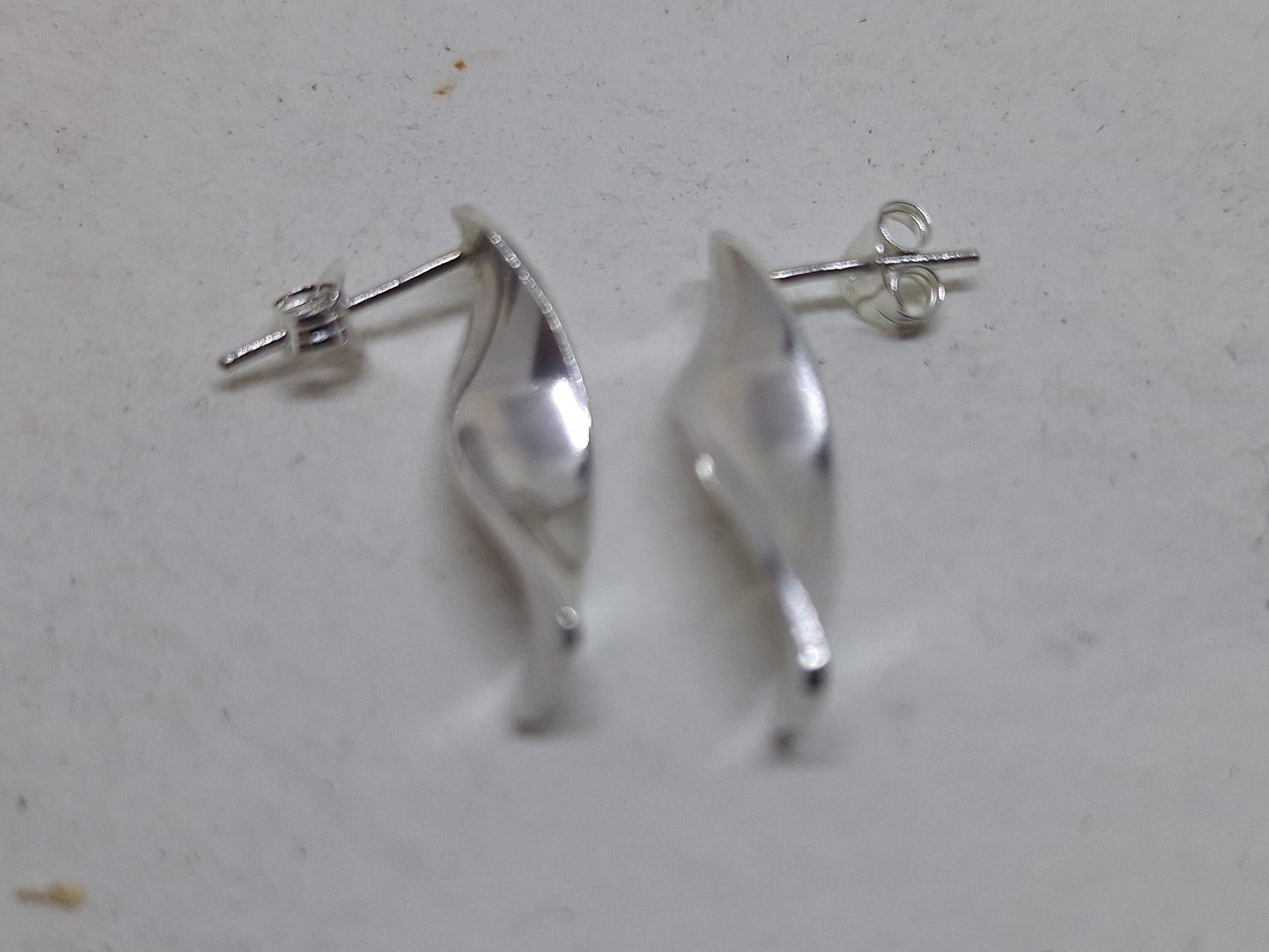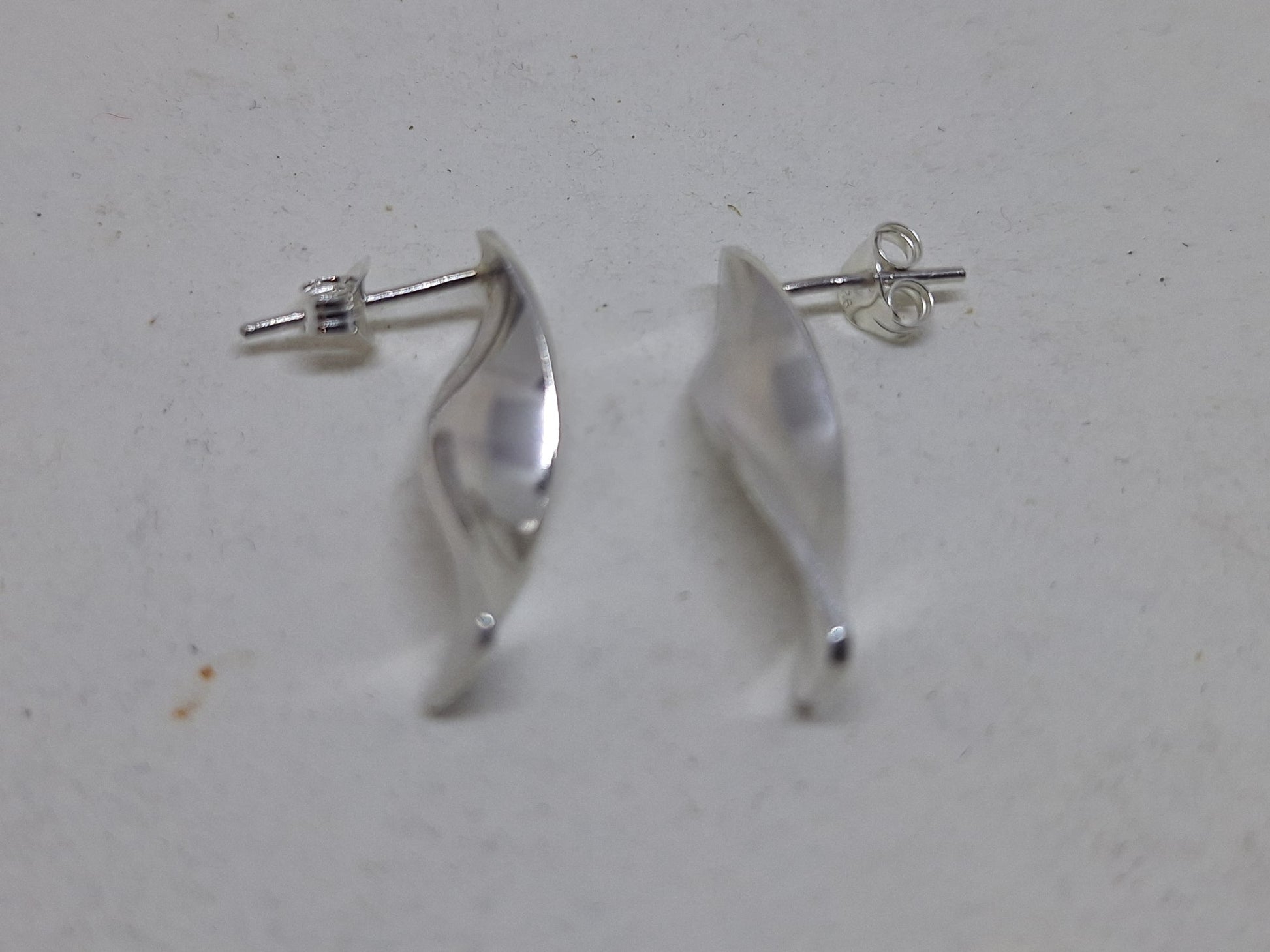 Sea kelp sterling silver earrings finished to a matt one side and high-shine the other, inspired by the Pembrokeshire coast.